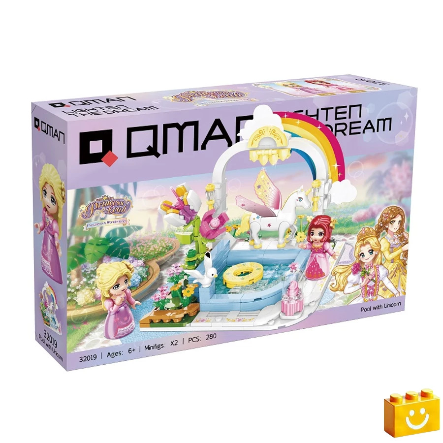 QMAN 32019 - Unicornisos medence építőjáték - 100% kompatibilis minden más kedvelt márkával